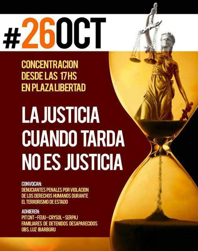 Empantanadas, demoradas o atravesando procesos de enlentecimiento judicial, más de 300 causas de terrorismo de Estado continúan sin encontrar verdad y justicia. Este jueves #26OCT en Uruguay sucederán dos hechos …