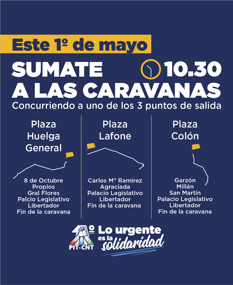1° de Mayo · SUMATE A LAS CARAVANAS ▪️A partir de las 10:30 horas se empezarán a concentrar vehículos (autos y motos particulares) en las plazas: Lafone Colón Huelga General. …