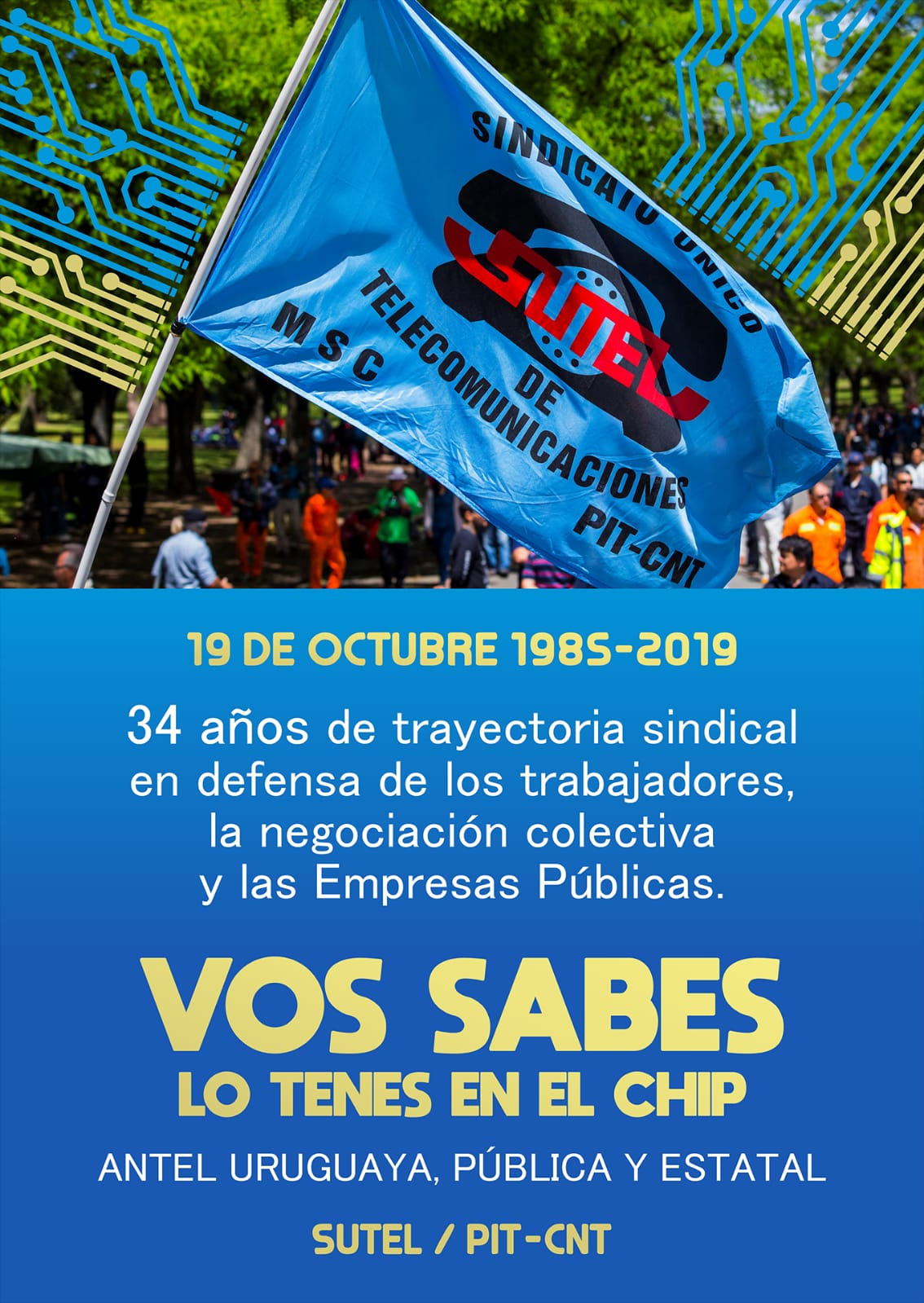 Hoy 19 de octubre nuestro sindicato cumple 34 años( 1984-2019) , arduo y difícil fue el trabajo de unidad y formación hasta que dio sus frutos y parimos a Sutel! …