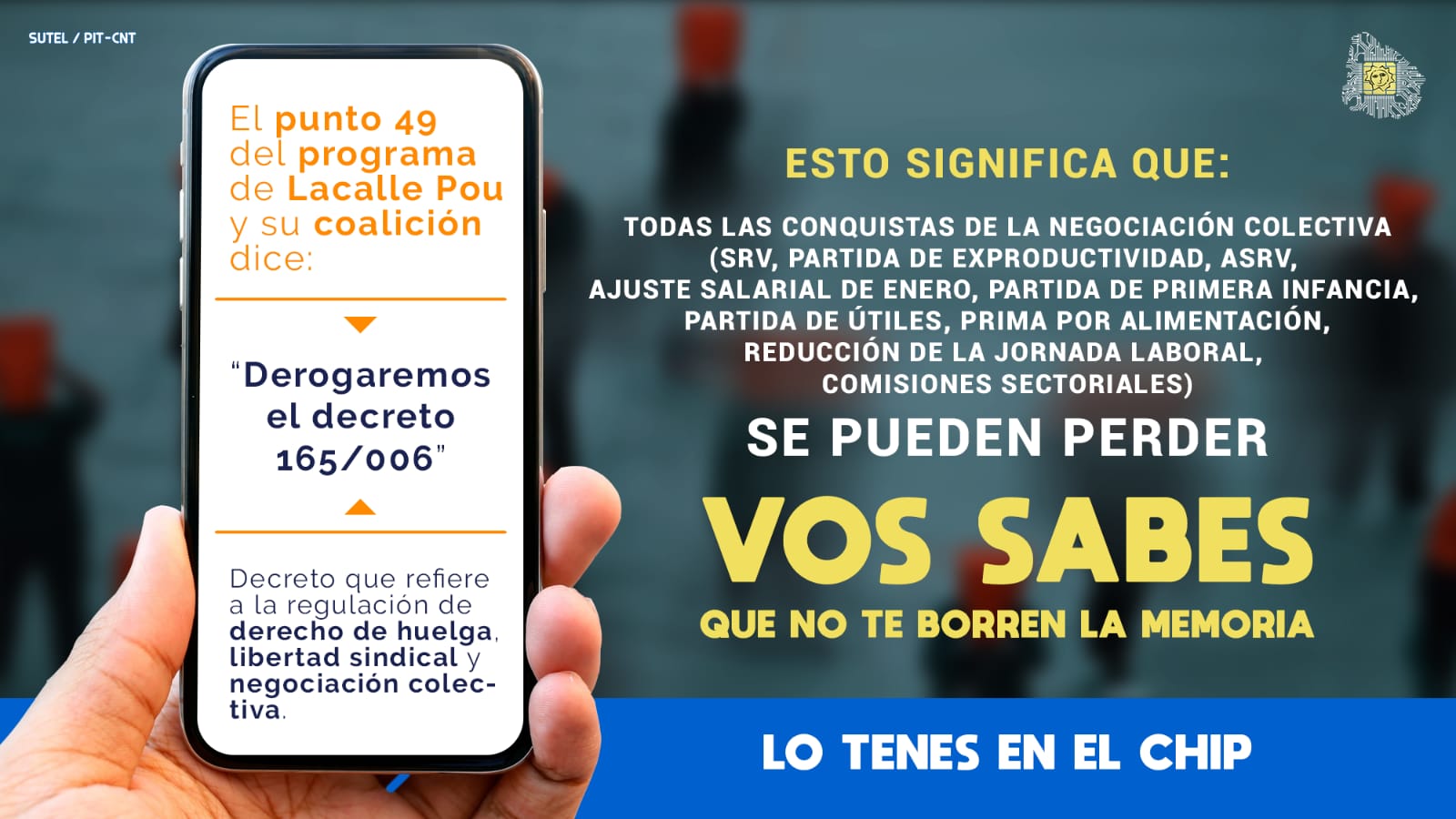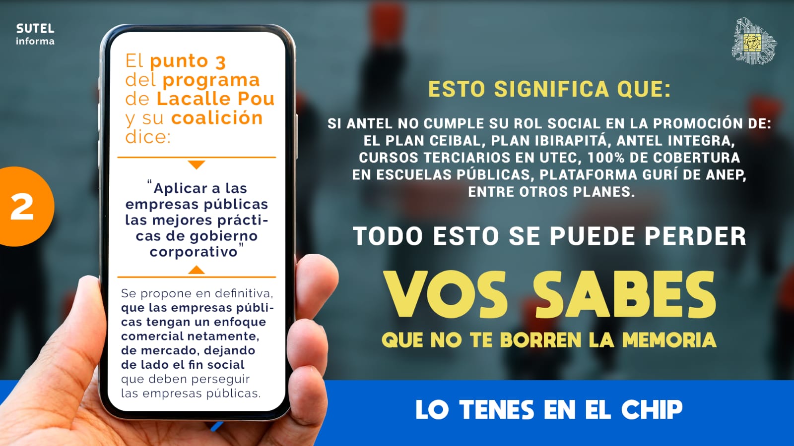 NUEVO !!! Campaña nacional de SUTEL en defensa de las empresas públicas. Pieza 5:Que no te borren la memoria. ANTEL, URUGUAYA, PÚBLICA Y ESTATAL, VOS SABES, LO TENES EN EL …
