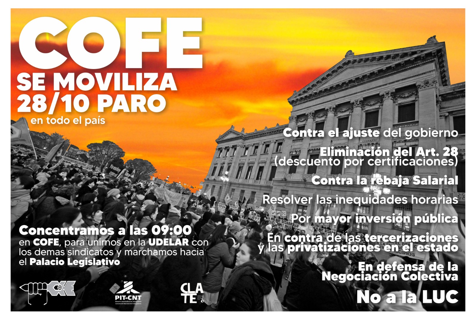 Compañeros/as El próximo miércoles 28 de octubre se realizara una movilización de los trabajadores públicos en el marco del debate por el Presupuesto. Se realizara una concentración en la Udelar …