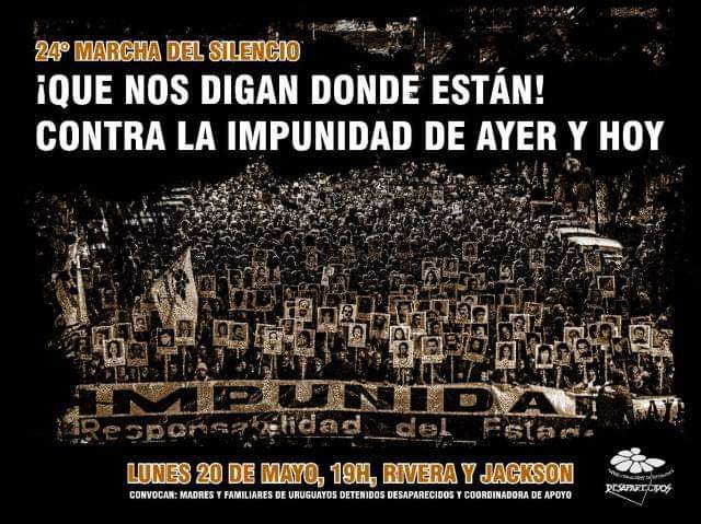 Compañeras y compañeros El próximo 20 de Mayo se realizará la Marcha del Silencio, 19 hs. en Rivera y Jackson; como hace 24 años acompañamos a Madres y Familiares de …