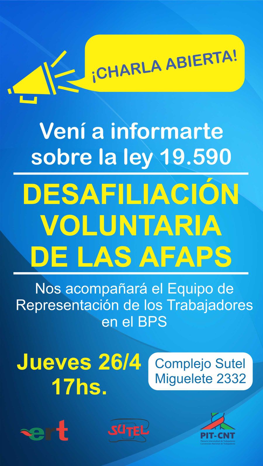Les recordamos que el próximo sábado 7 de abril se realizara en nuestro local sindical la Asamblea General del SUTTA (Sindicato de Trabajadores Tercerizados de Antel) para decidir si pasan …