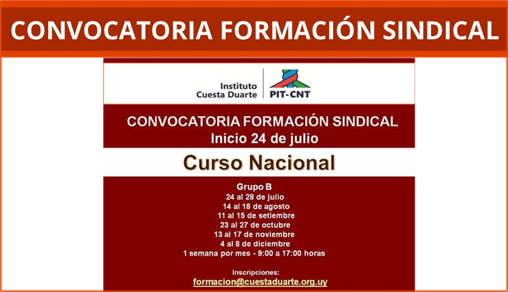 Compañeros: Nuestro sindicato cuenta con algunos cupos para realizar este curso en el Instituto Cuesta Duarte, por sus características estamos convocando a integrantes de la Mesa Ejecutiva, delegados que hicieron …