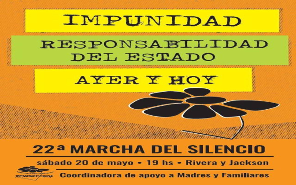 Como desde hace 22 años, el sábado 20 de mayo marcharemos con la consigna “Impunidad. Responsabilidad del Estado. Ayer y Hoy”. Los convocamos a que nos acompañen saliendo desde Rivera …