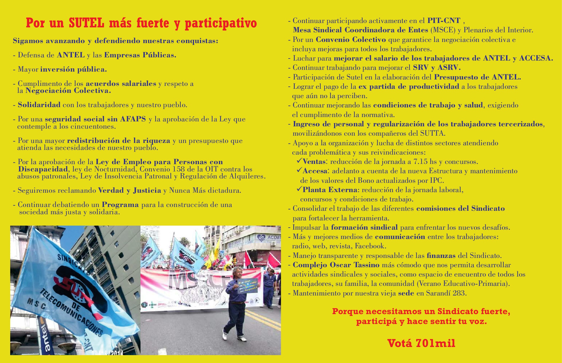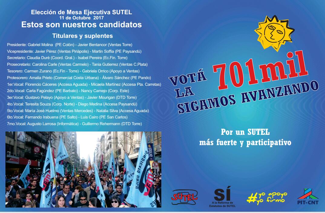 Elecciones de Mesa Ejecutiva SUTEL 2017-2018 – Lista 701mil Públicado en octubre 6, 2017octubre 6, 2017 por Ivan Padula