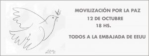 Movilización por La Paz Públicado en octubre 9, 2017 por Sutel Secretaria 12 DE OCTUBRE 18hs. TODOS A LA EMBAJADA DE EEUU NOS MOVILIZAMOS: • POR LA PAZ • POR LA DEMOCRACIA • POR LA LIBRE AUTODETERMINACIÓN DE LOS PUEBLOS!!!!
