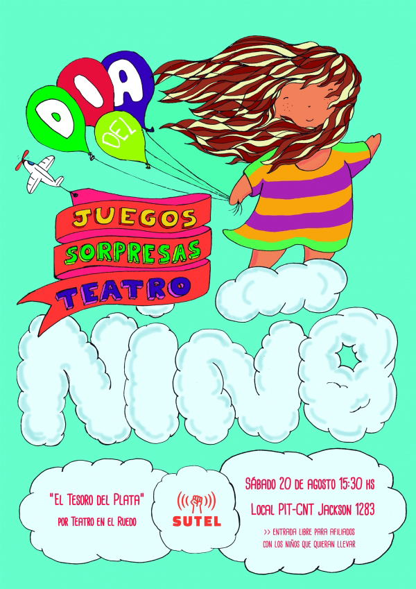 Actividad especial del día del niño – 20 de agosto. Públicado en agosto 11, 2016agosto 19, 2016 por Ivan Padula Este sábado 20, invitamos a todos los niños y niñas a participar de una jornada especial para ello/as. Cualquier consulta escribir a propaganda@sutel.org.uy o a través de nuestro facebook Sutel Enlared. Los esperamos!