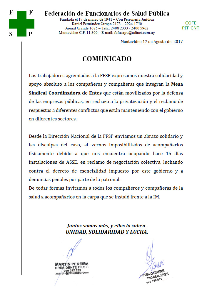 Comunicado de la FUS